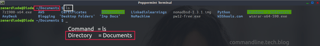 The command is called “ls“. Here we can see the contents of the Document directory